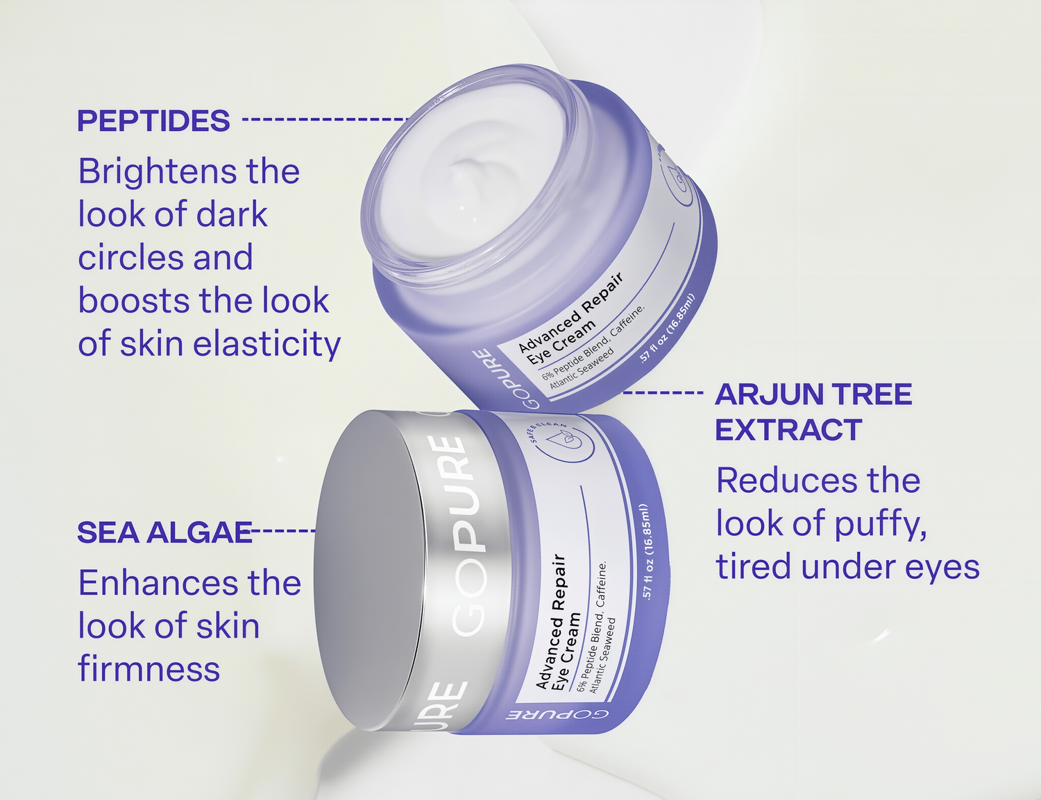 goPure Advanced Repair Eye Cream features a blend of powerful natural ingredients, including peptides, hyaluronic acid, and botanical extracts. These components work synergistically to hydrate, brighten, and firm the skin. Peptides stimulate collagen production, while hyaluronic acid provides deep moisture. Botanical extracts such as cucumber and green tea soothe and calm inflammation. This rich formulation not only targets under-eye concerns but also plays a vital role in overall skin health.